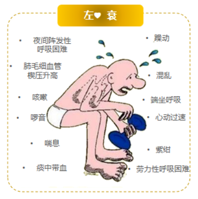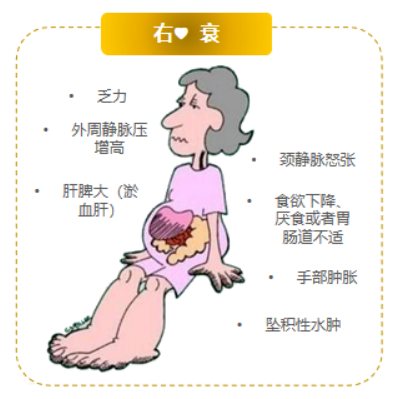 注意:因左心衰竭发展成为全心衰竭的患者,呼吸困难等可能反而有所减轻,但这并不意味着病情好转,而是加重的表现,应高度重视。