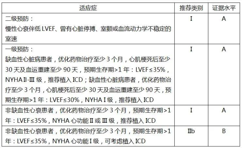 2018中国心力衰竭诊断与治疗指南ICD适应症: