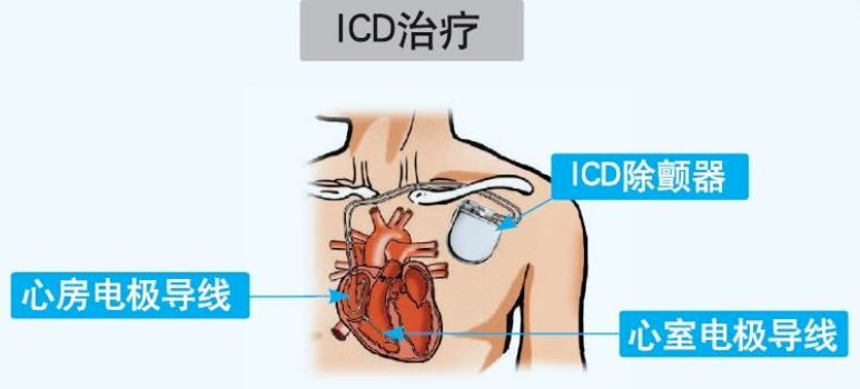 植入型心律转复除颤器(ICD)是一种能识别并及时终止恶性室性心律失常的电子装置, 它可以在十秒钟内自动识别室颤等恶性心律失常并发放电击除颤,挽救患者的生命。当出现缓慢性心律失常,它又可起搏心脏。