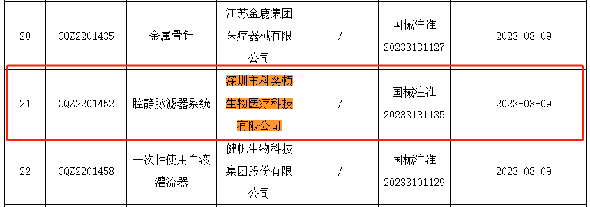 深圳市科奕顿生物医疗科技有限公司-腔静脉滤器系统